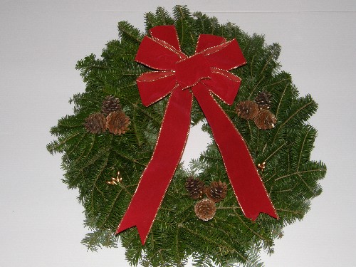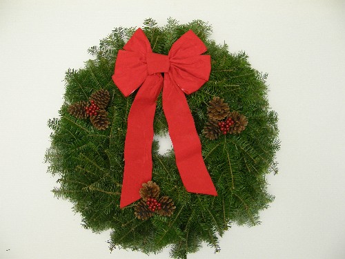 Traditional WreathA 24" fresh classic looking christmas wreath, decorated with 3 grouping of natural pinecones, many red holly berries and a 7 loop beautiful handmade red velvet bow.25.00 CAD + Shipping |