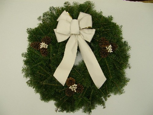 Winter White WreathA 24" fresh classic looking christmas wreath, decorated with 3 grouping of natural pinecones, many red holly berries and a 7 loop beautiful handmade red velvet bow.25.00 CAD + Shipping |